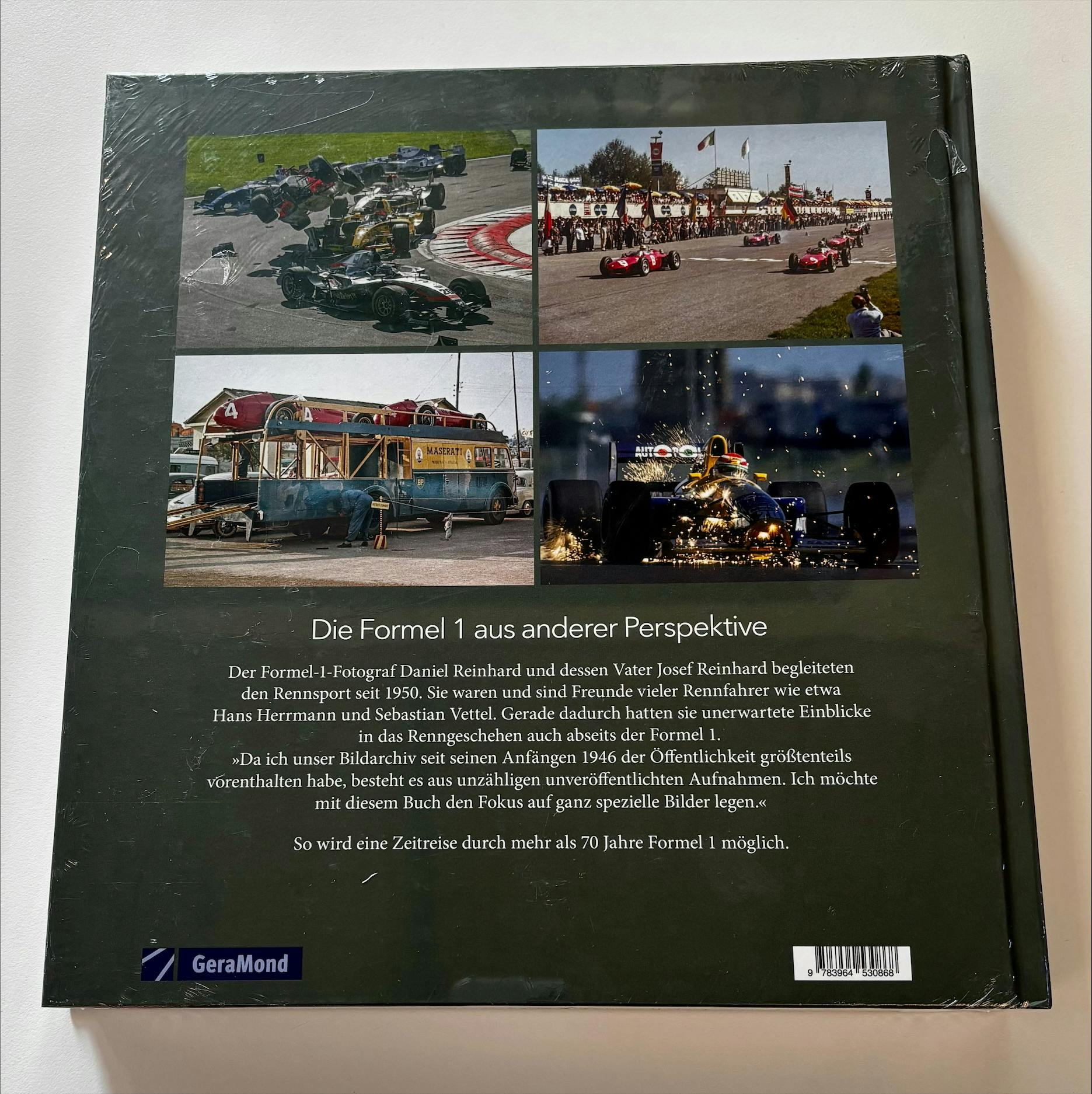Die Formel 1 aus einer anderen Perspektive auf 288 Seiten. Das Buch beinhaltet grösstenteils unveröffentlichte Bilder aus mehr als 70 Jahren Rennsport – von 1950 bis heute.Der bekannte Formel-1-Fotograf Daniel Reinhard und dessen Vater Josef Reinhard begleiten die Formel 1 seit 1950. Sie waren und sind Freunde vieler Rennfahrer (etwas von Stirling Moss, Nikki Lauda und Michael Schumacher). Daher waren ihnen Einblicke erlaubt, die sonst nicht möglich sind. Vieles aus dem privaten Umfeld von Fahrern, Teamchefs oder auch Designern.
