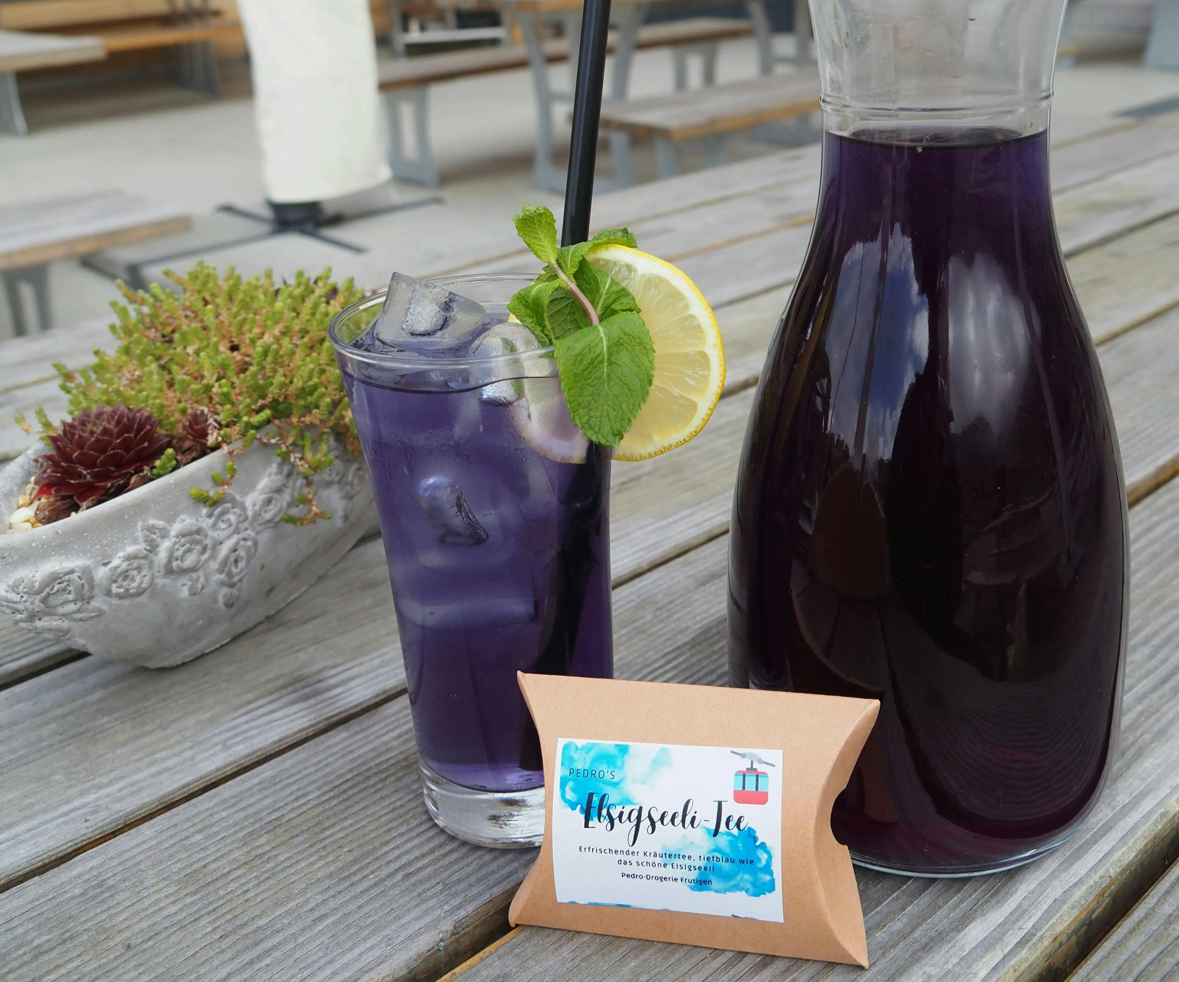 Erfrischende Kräutertee-Mischung mit herrlich blauer Farbe, die an unsere schönen Bergseen auf der Elsigenalp erinnert.
