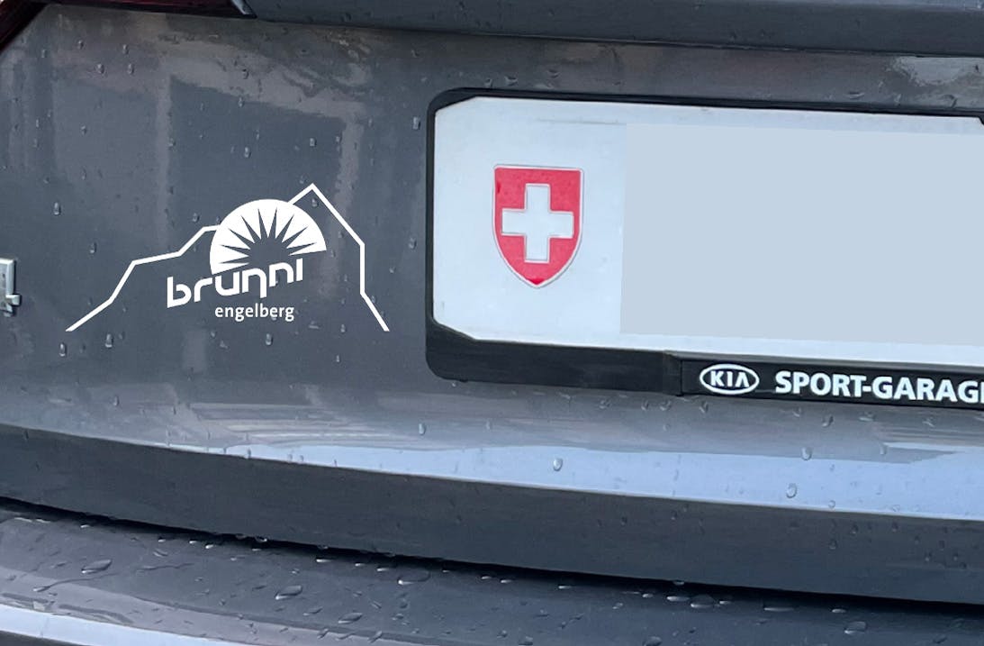 Unser Brunni Auto-Kleber in 2 Varianten.