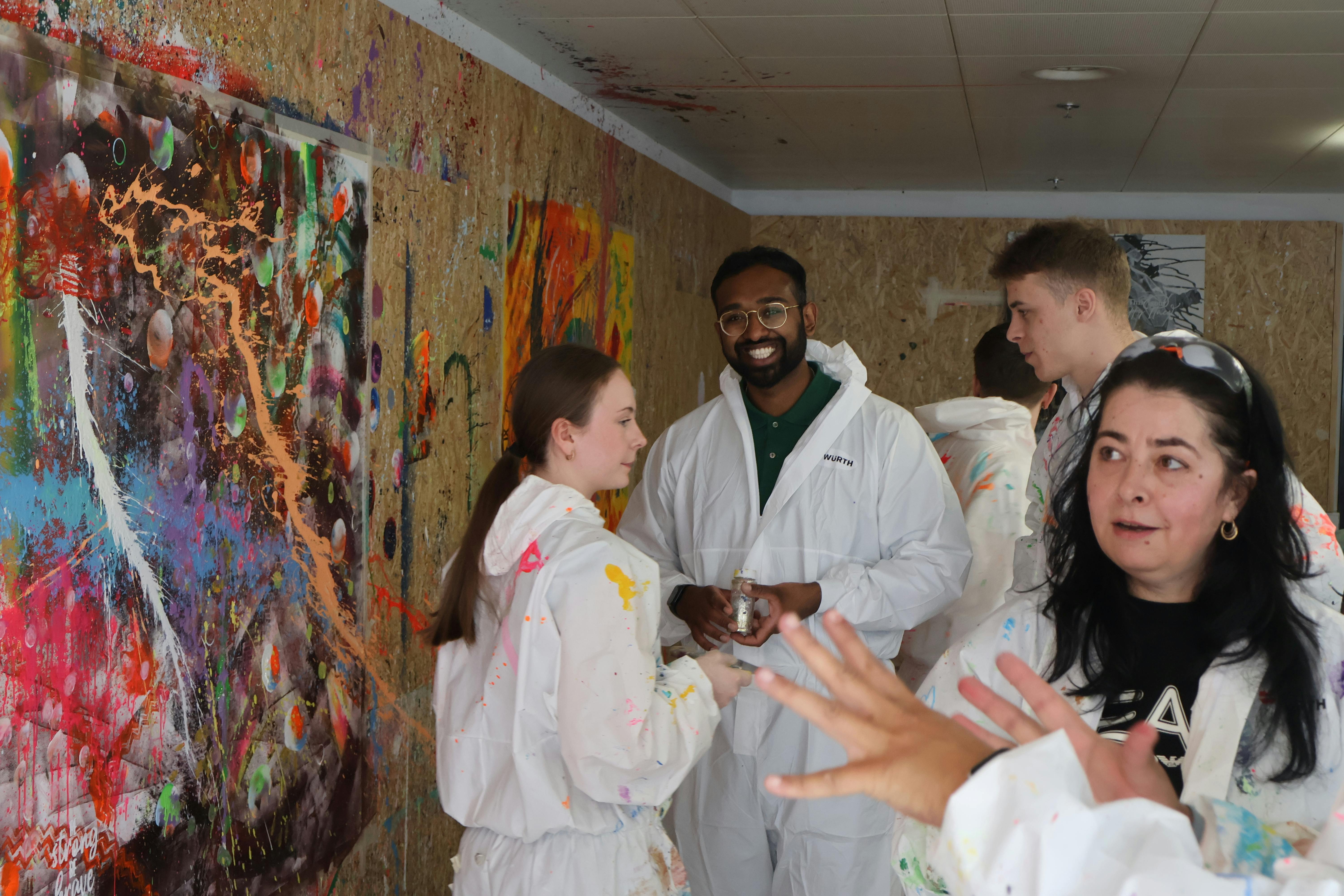 Zusammen im gesamten Team sind wir nach Chur gefahren und haben da mit Action Painting vier verschiedene Etiketten hergestellt.