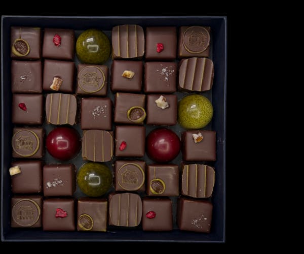 Eine Auswahl von handgefertigten, saisonalen Pralinés, die durch Geschmack und Qualität überzeugen und Herzen erobern.
