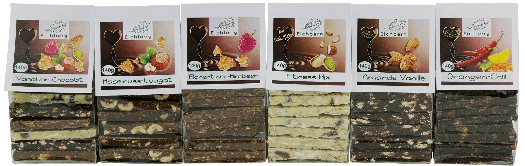 Ein Hochgenuss aus gerösteten, caramelisierten Haselnüssen und knusprigem Haselnuss-Nougat. Die Zutaten werden mit der zartschmelzenden Grenada (38% Kakao) Milchschokolade von Felchlin in einen Rahmen gegossen. Nach einer kurzen Weile im Kühlschrank werden die Stücke zugeschnitten und verpackt.