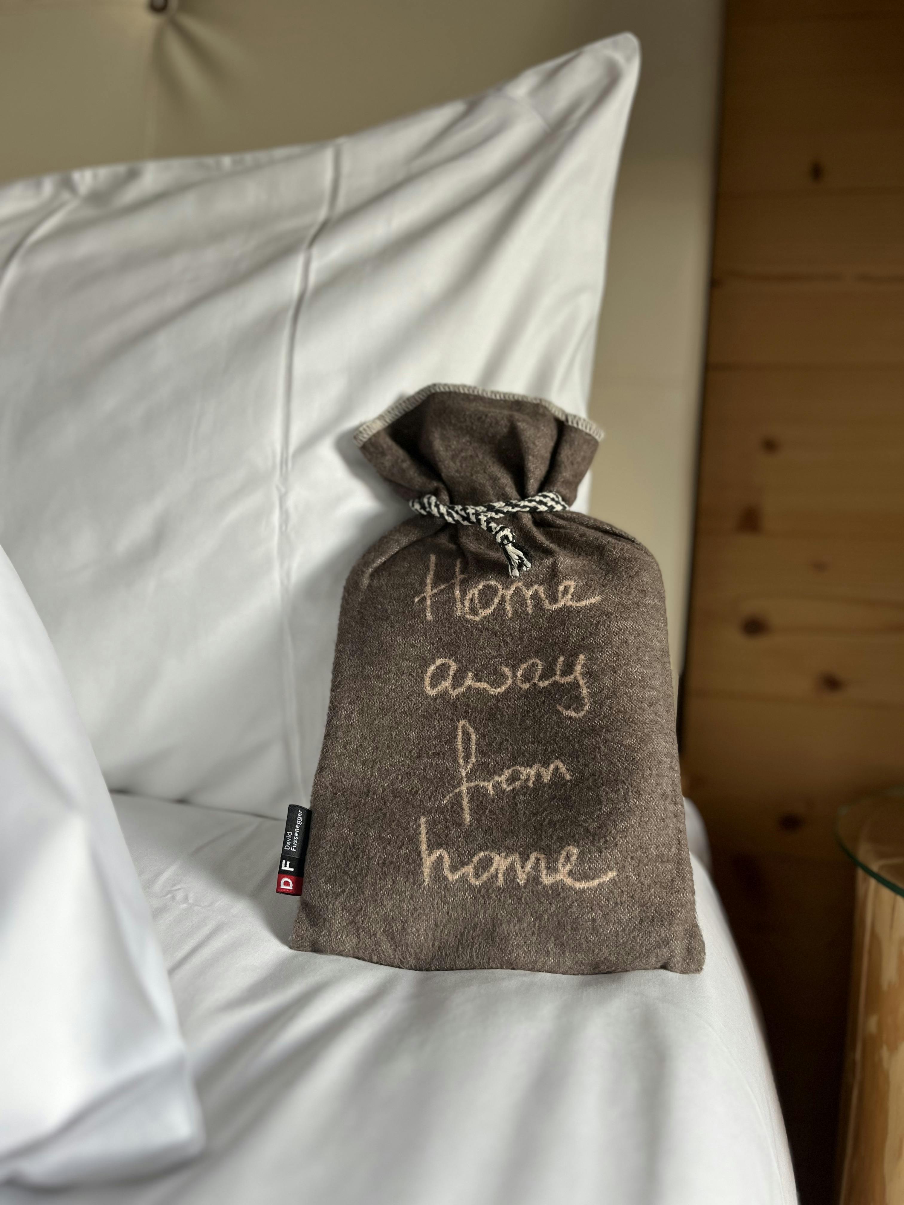 Wärmen Sie Ihre Abende mit unserer "Home away from home" Wärmflasche. Nach dem Befüllen mit heißem Wasser spendet sie sanfte und langanhaltende Wärme für gemütliche und entspannende Momente zu Hause.