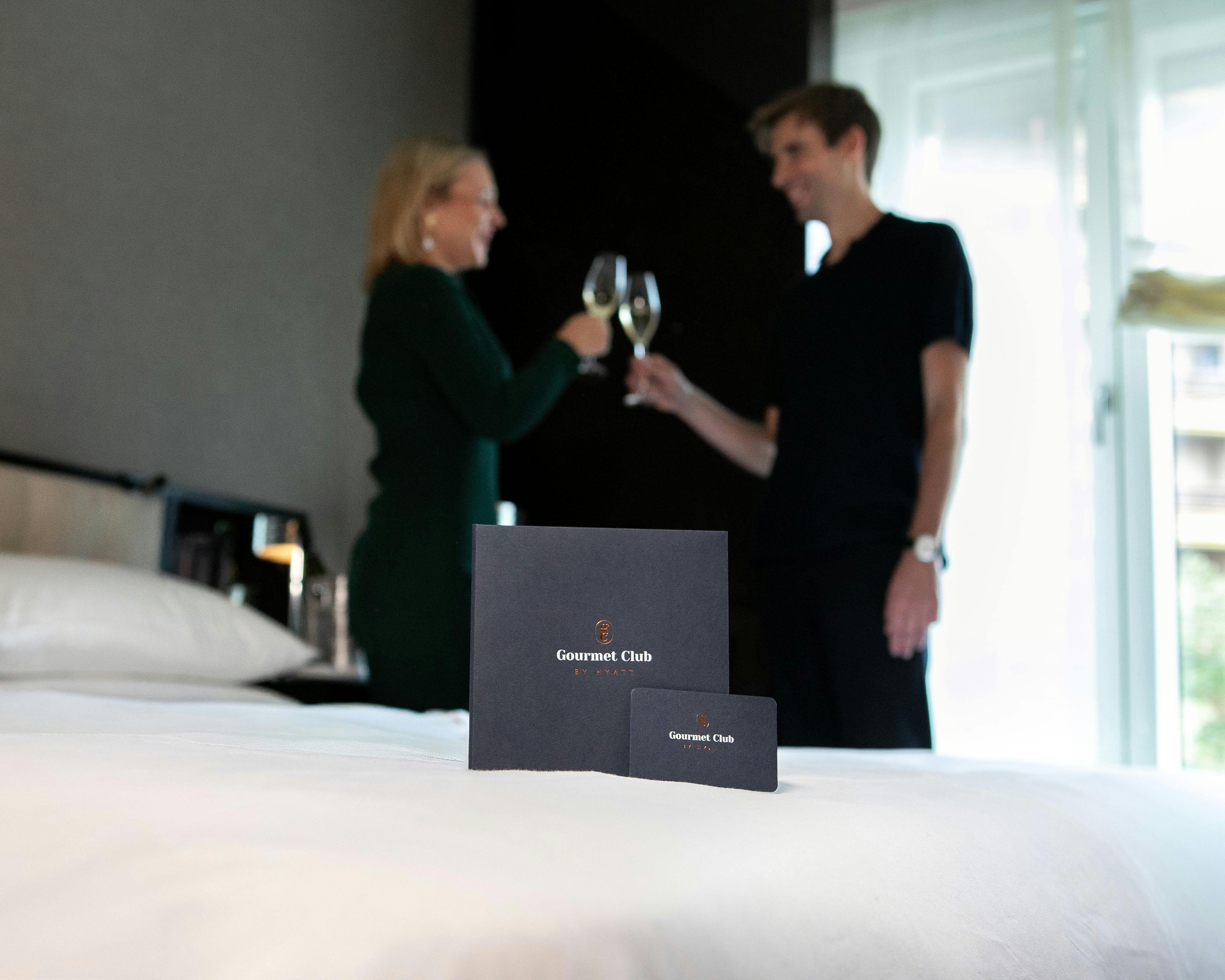 Als exklusives Clubmitglied erhalten Sie eine Clubkarte. Sie ist die Eintrittskarte für besondere Gourmeterlebnisse in unseren Restaurants und Bars. Hier erhalten Sie zwölf kostenfreie Essen, wenn Sie zu zweit speisen. Zusätzliche Vorteile sind ein kostenfreier Tageseintritt zwei Personen in einem der luxuriösen Hyatt Spas Ihrer Wahl. Eine Flasche Champagner direkt einzulösen bei Ihrem Restaurantbesuch oder über den Zimmerservice.