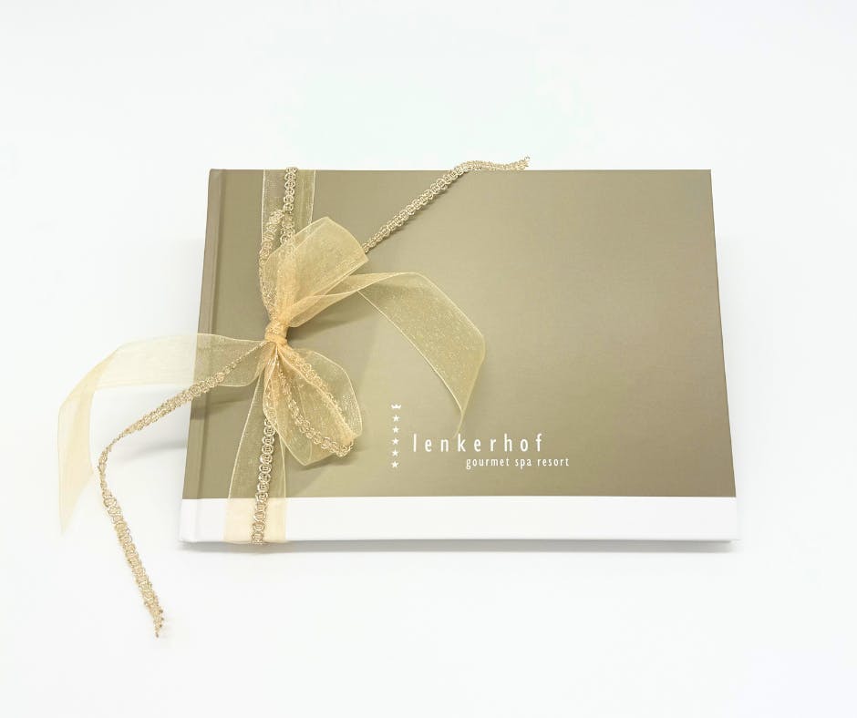 Verleihen Sie Ihrem Gutschein eine besondere Wertigkeit: Ergänzen Sie Ihr Geschenk ganz einfach mit unserer stilvollen Geschenkverpackung. Diese umfasst die exklusive Lenkerhof-Broschüre sowie eine dekorative Schleife.