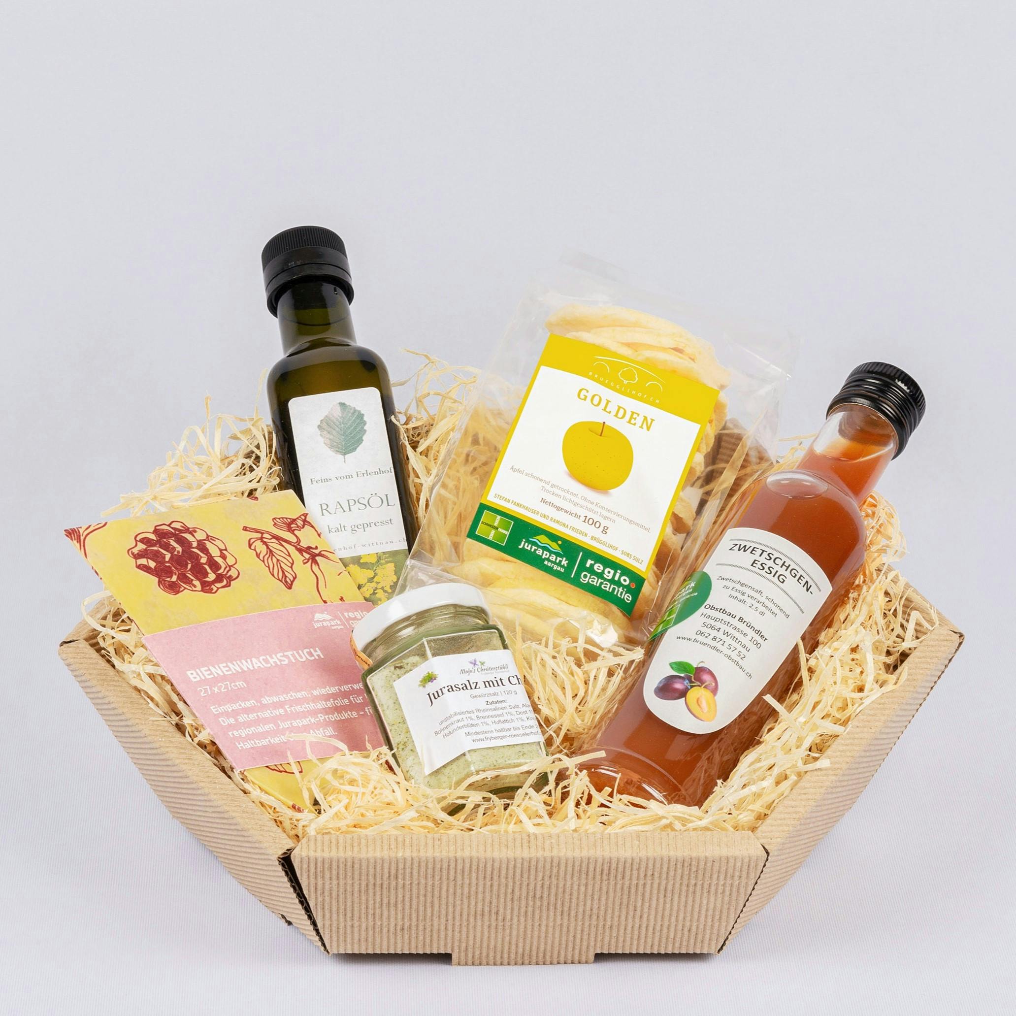 Verschenken Sie das Jurapark-Geschenkset zusammen mit einem Gutschein.