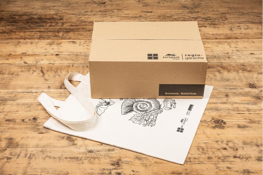 Verschenken Sie das Jurapark-Geschenkset zusammen mit einem Gutschein.
