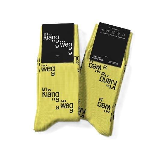 Gelbe Stricksocke mit kleinen Klangweg-Logos. Unsere Socken werden umweltfreundlich in Portugal hergestellt und sind OEKO-TEX® zertifiziert. Einheitsgrösse für Erwachsene passt von ca. Grösse 38 bis 45. Ideal für leichte Wanderungen, sowie für den sportlichen Alltag.