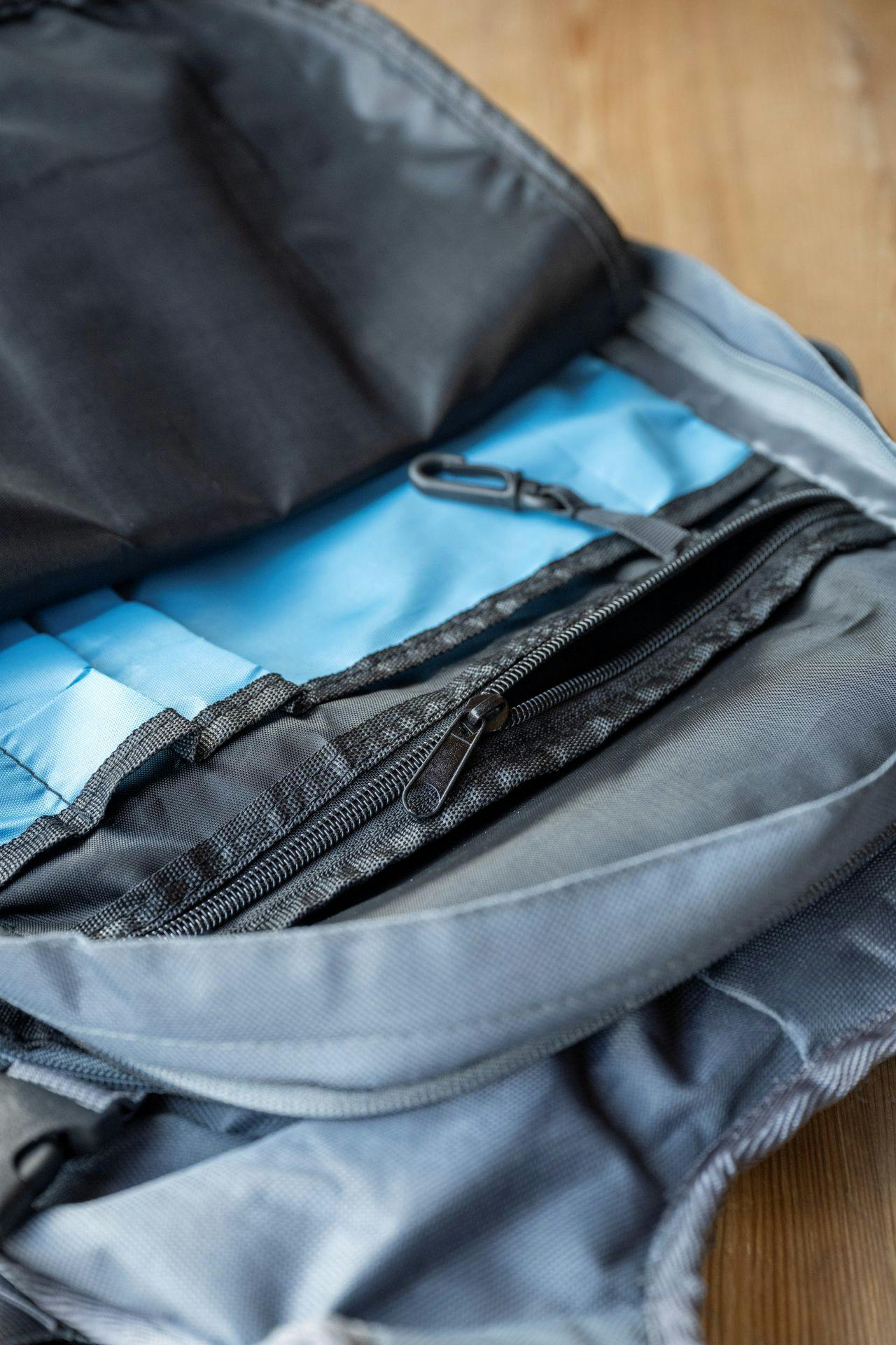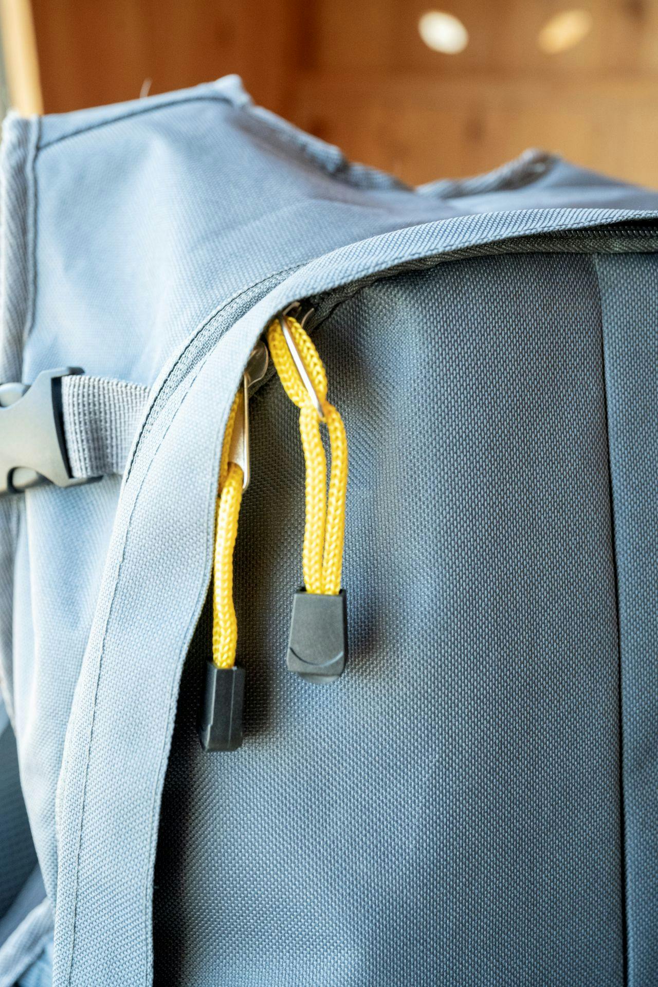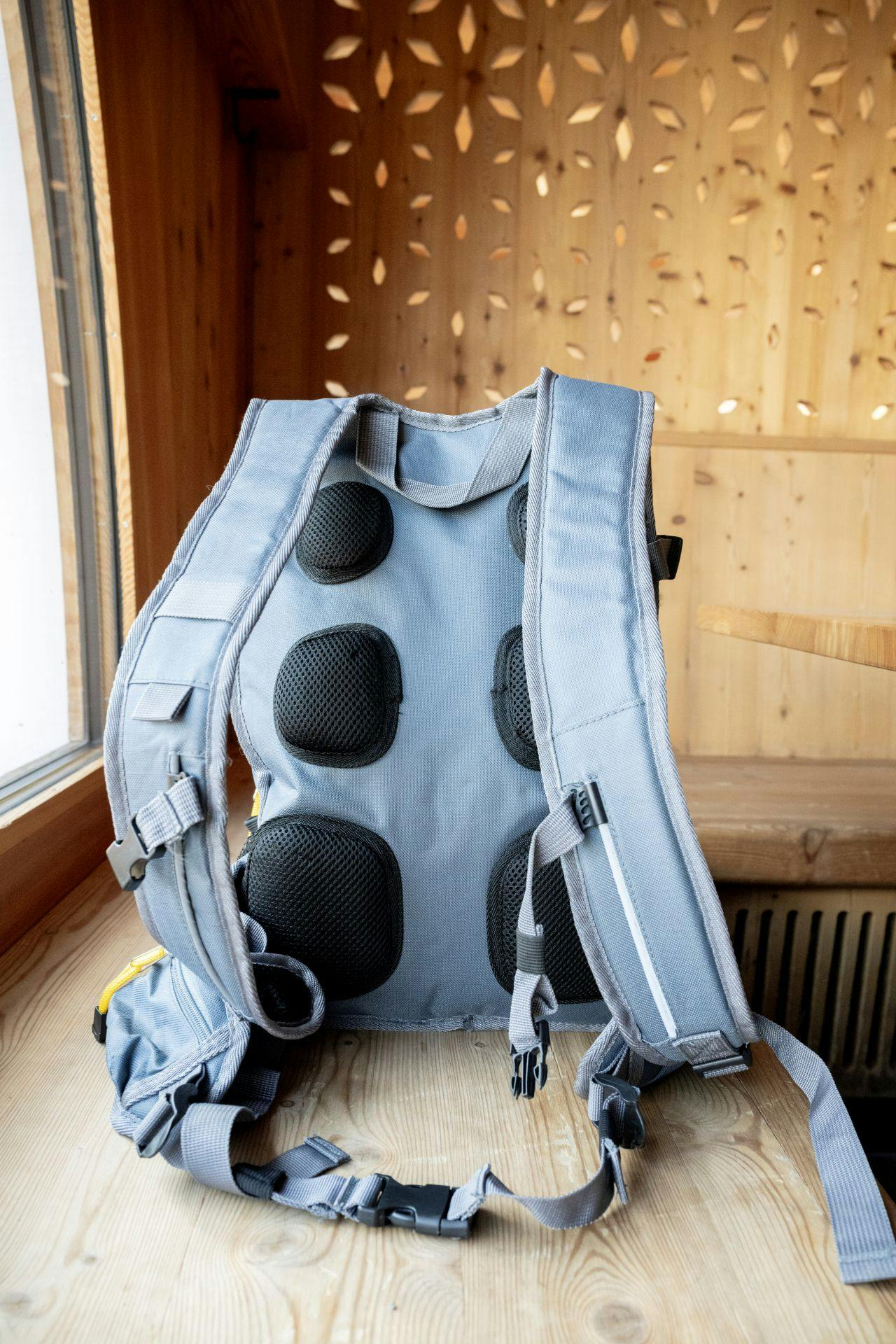 The "Mountains" rucksack combines functional design with a striking style. In elegant grey with blue and yellow accents, it is the perfect companion for all tours, whether in the mountains, on the way to work or in your free time.