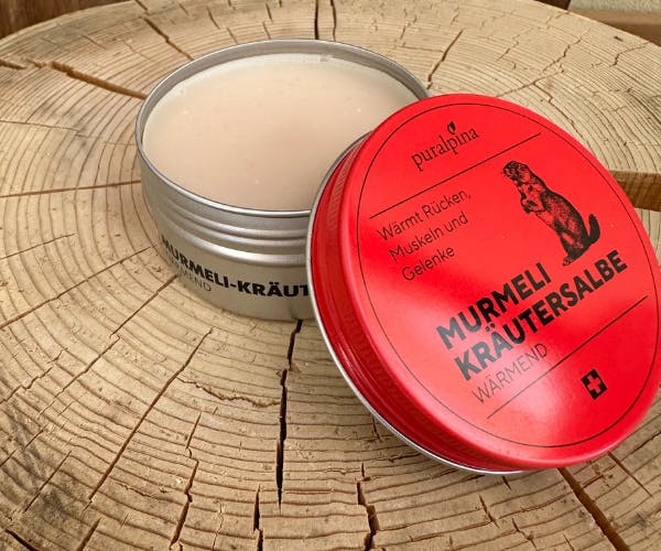 Die Murmeli-Kräutersalbe wärmt und entspannt und sorgt für wohltuende