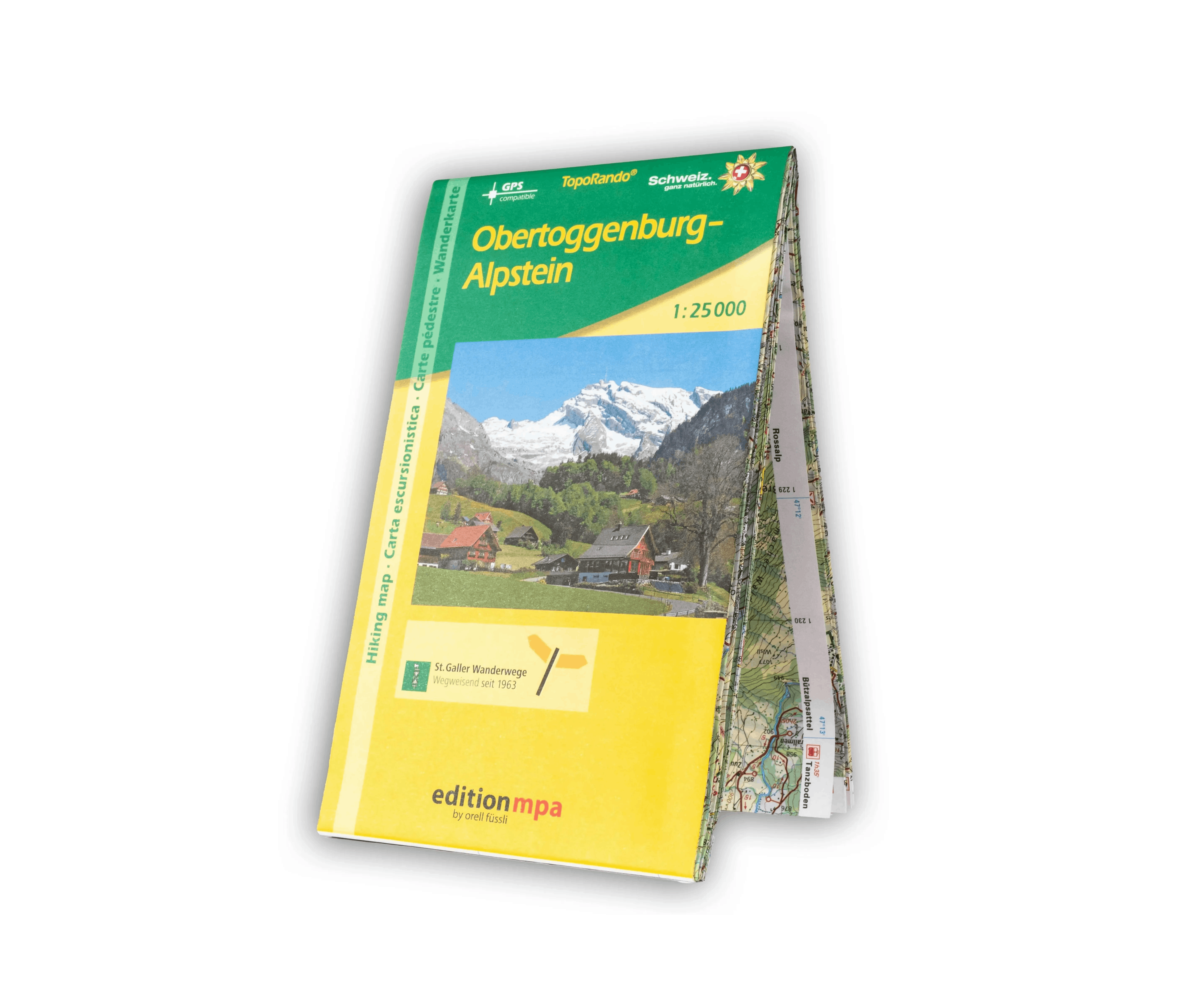 Diese Wanderkarte bietet eine praktische Übersicht über die Wanderwege im Alpstein und Obertoggenburg. Sind Sie Mitglied oder Gönner der St. Galler Wanderwege? Dann bestellen Sie die Karte mit Vergünstigung auf www.sg-wanderwege.ch.