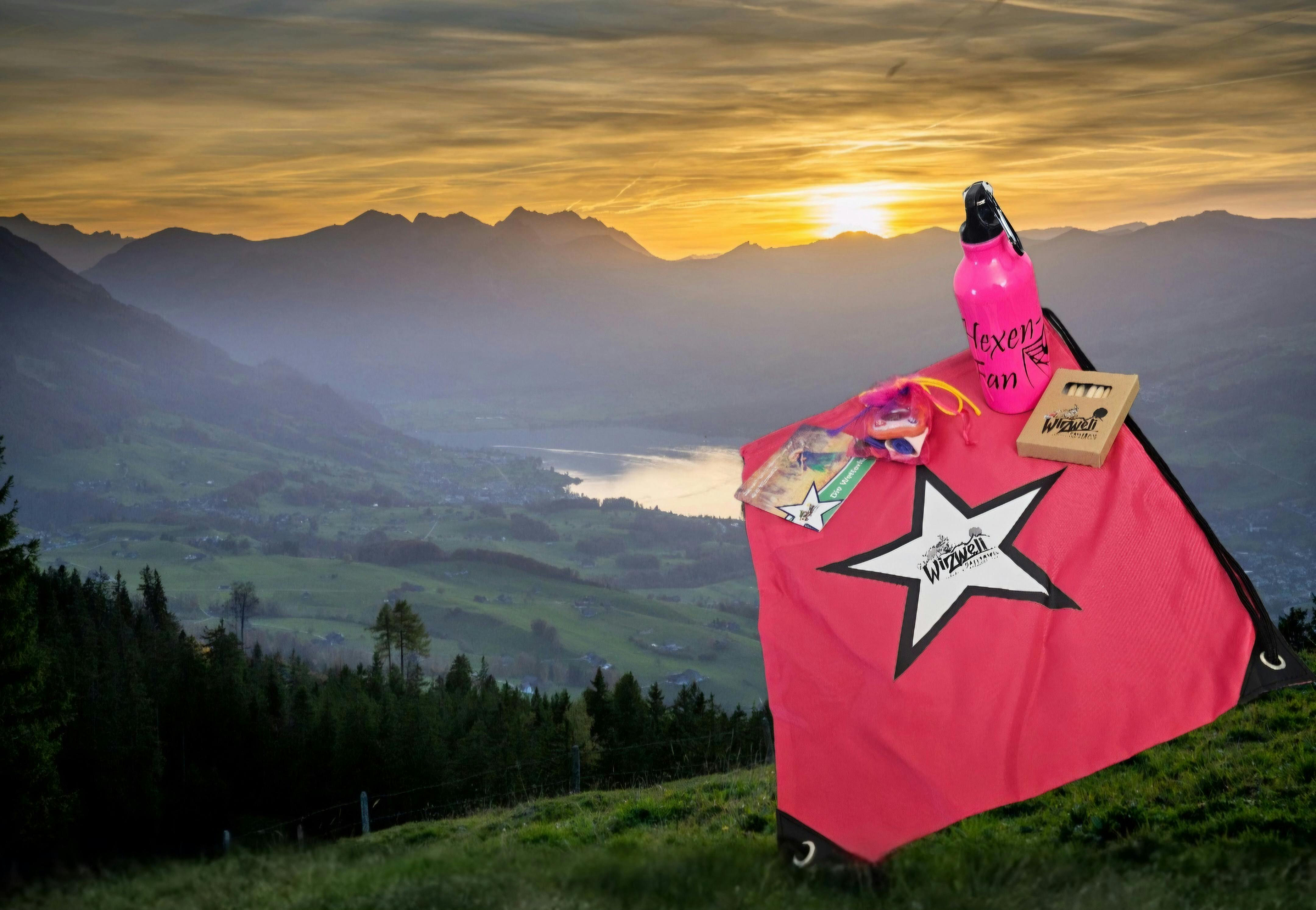 Spannender Hexenrucksack mit zusätzlichen Rätsel für den Wetterhexenweg. Der Rucksack beinhaltet: Rätselheft, Trinkflasche mit Karabiner, Kompass, Malstiften und Zauberutensilien.